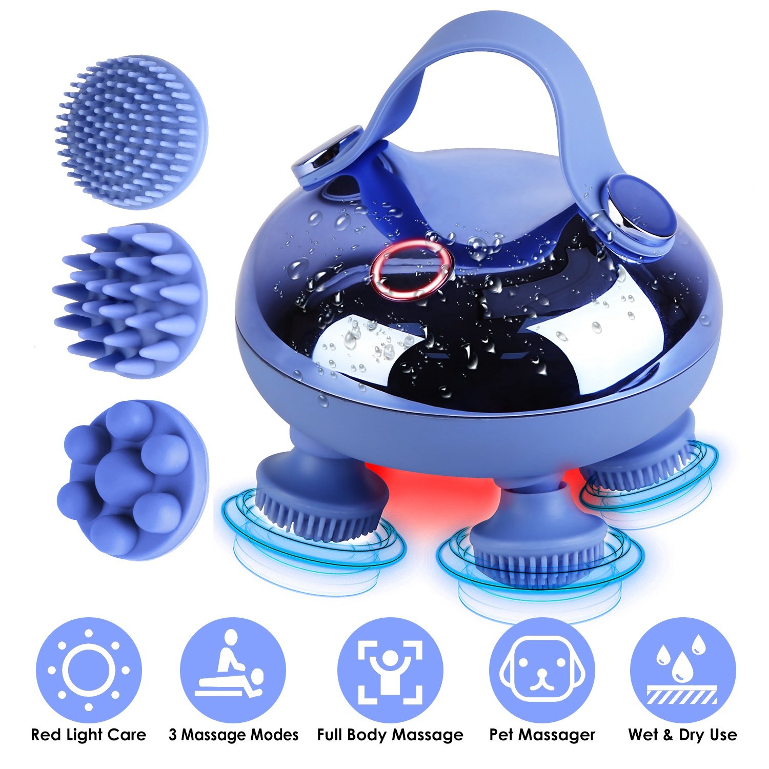 Electric Scalp Massager Rechargeable Head Mssager IPX7 Waterproof Dog Cat Massager with Red Light 3 Modes 3 Types of Massage Claws for Men Women Elder