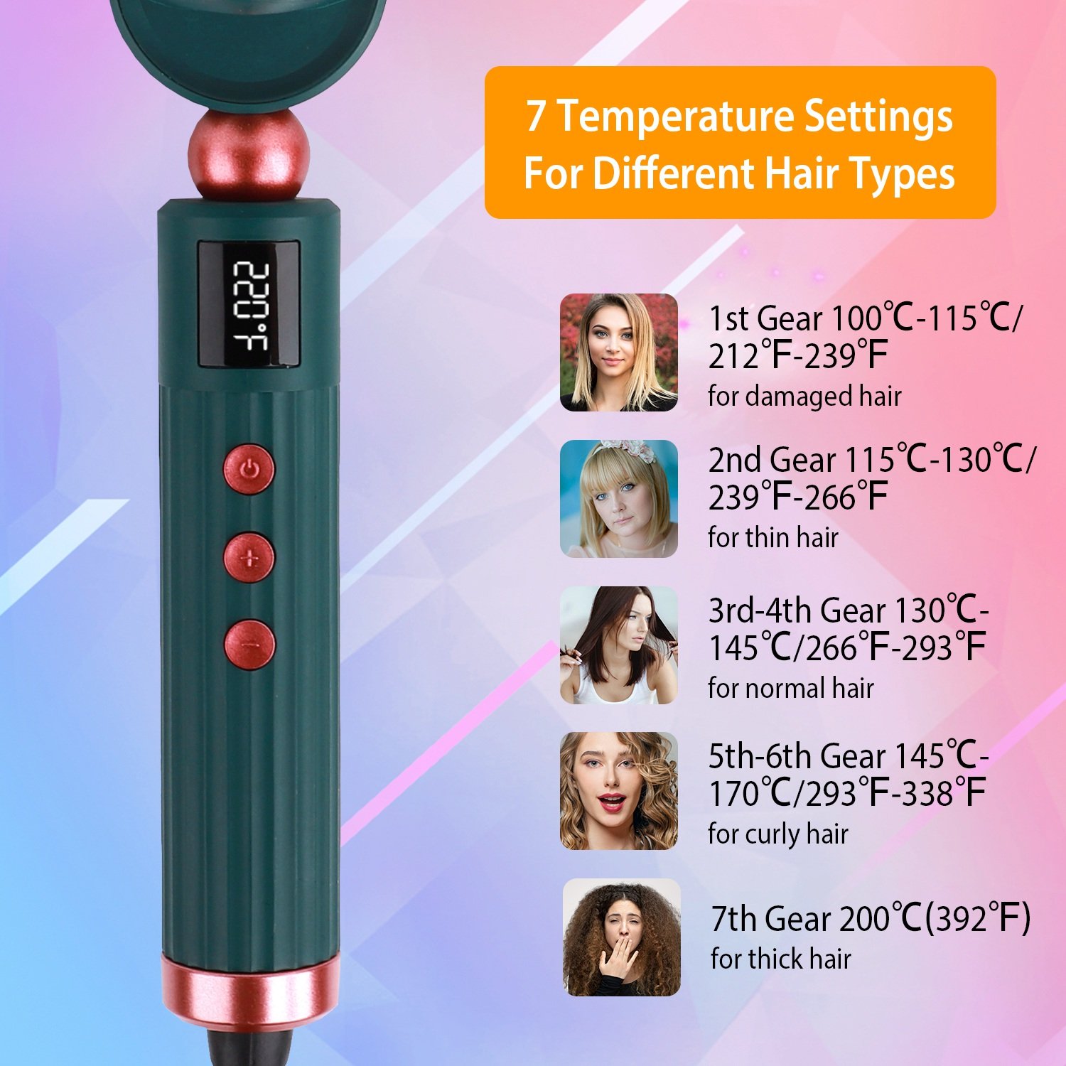 Temperature Range: 100℃-200℃/212℉-392℉(15℃/59℉ Increment/Decrement)