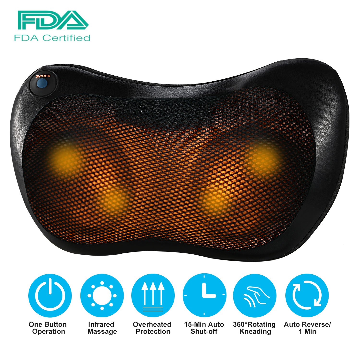 Back Neck Massage Pillow Kneading Massager In-Car Thermotherapy Massage Pillow w/ Car Charger US Plug Pain Relief Relaxing For Home Travel