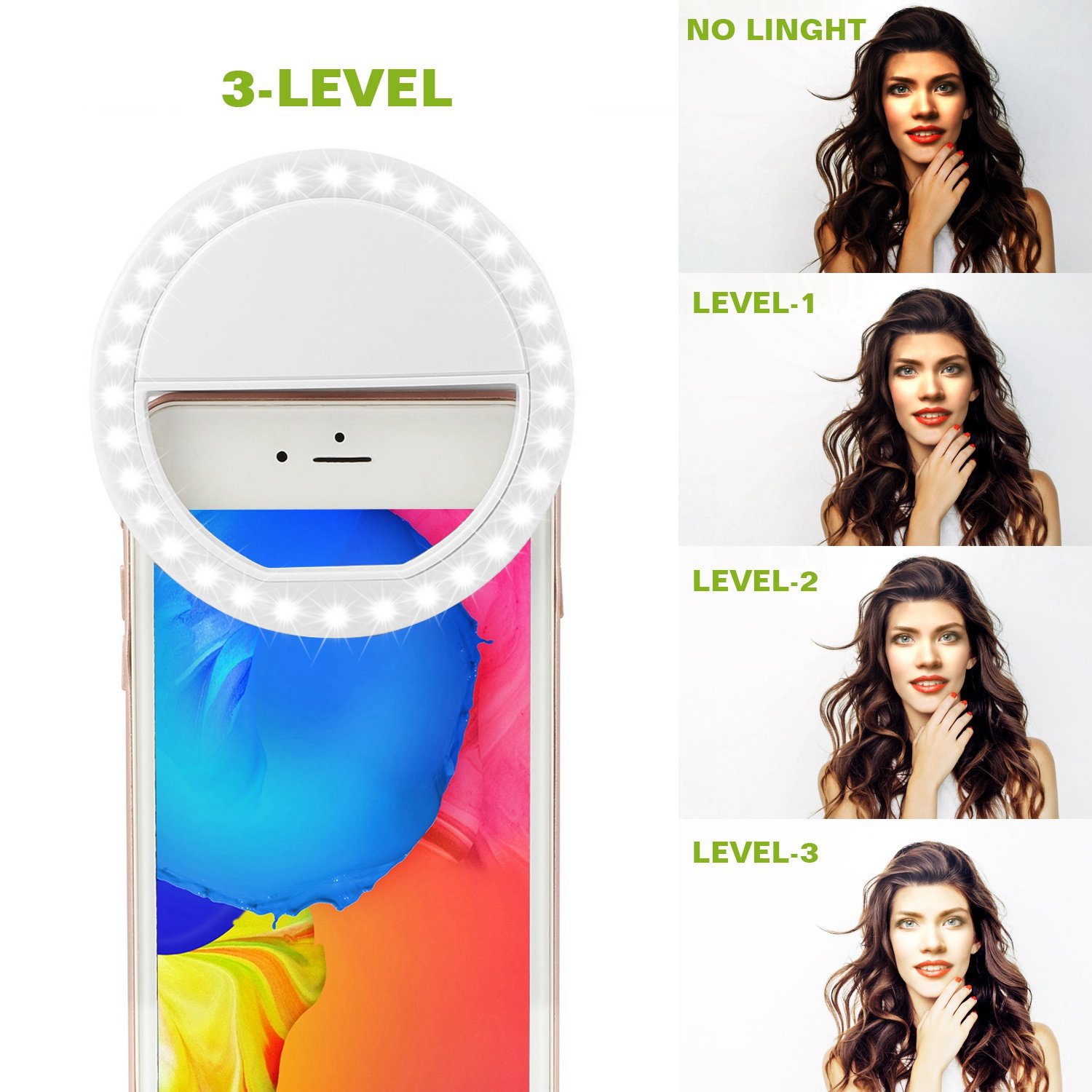 Home > Selfie Ring Light 36 LEDs Ring Fill Light Clip for for iPhone Xs Max/XR Galaxy S10 Plus Tablet