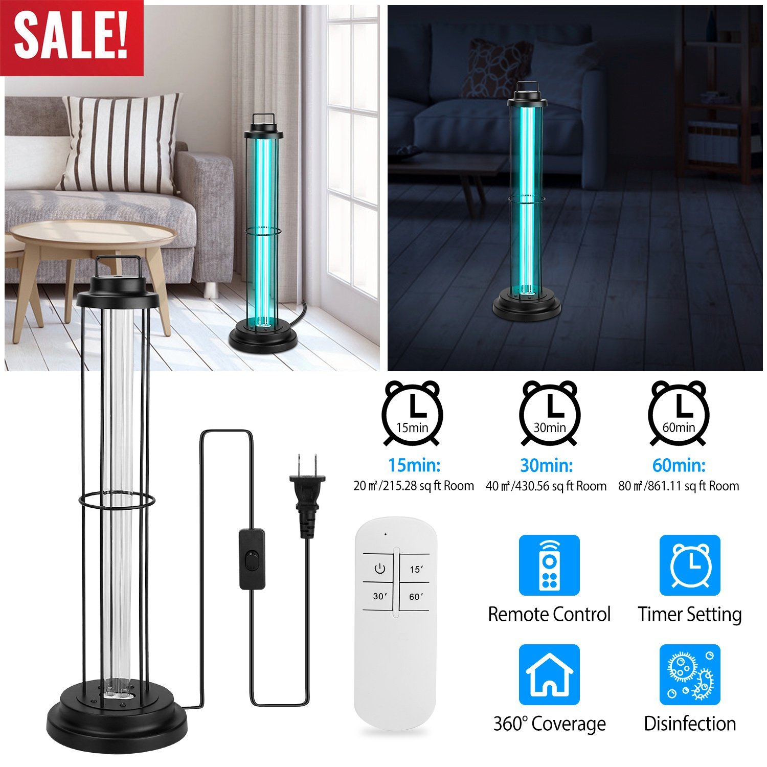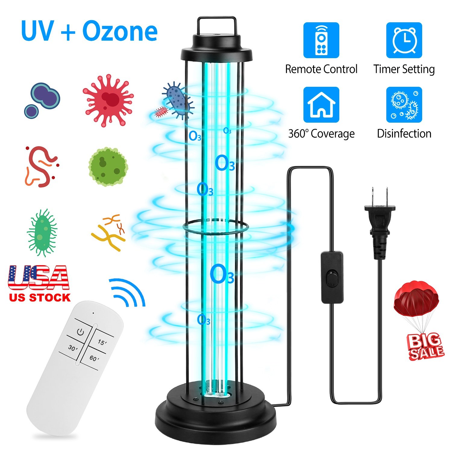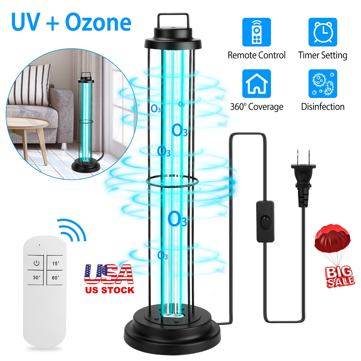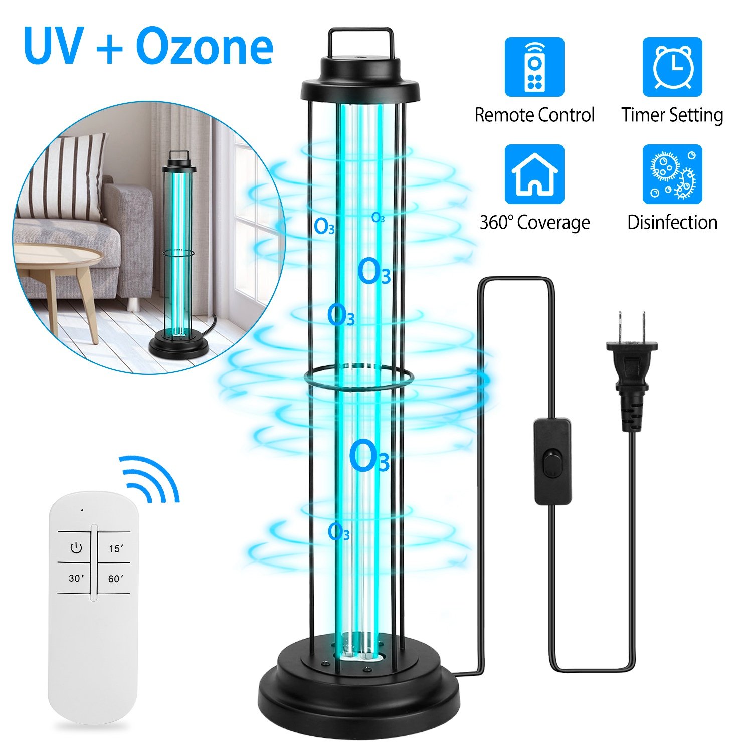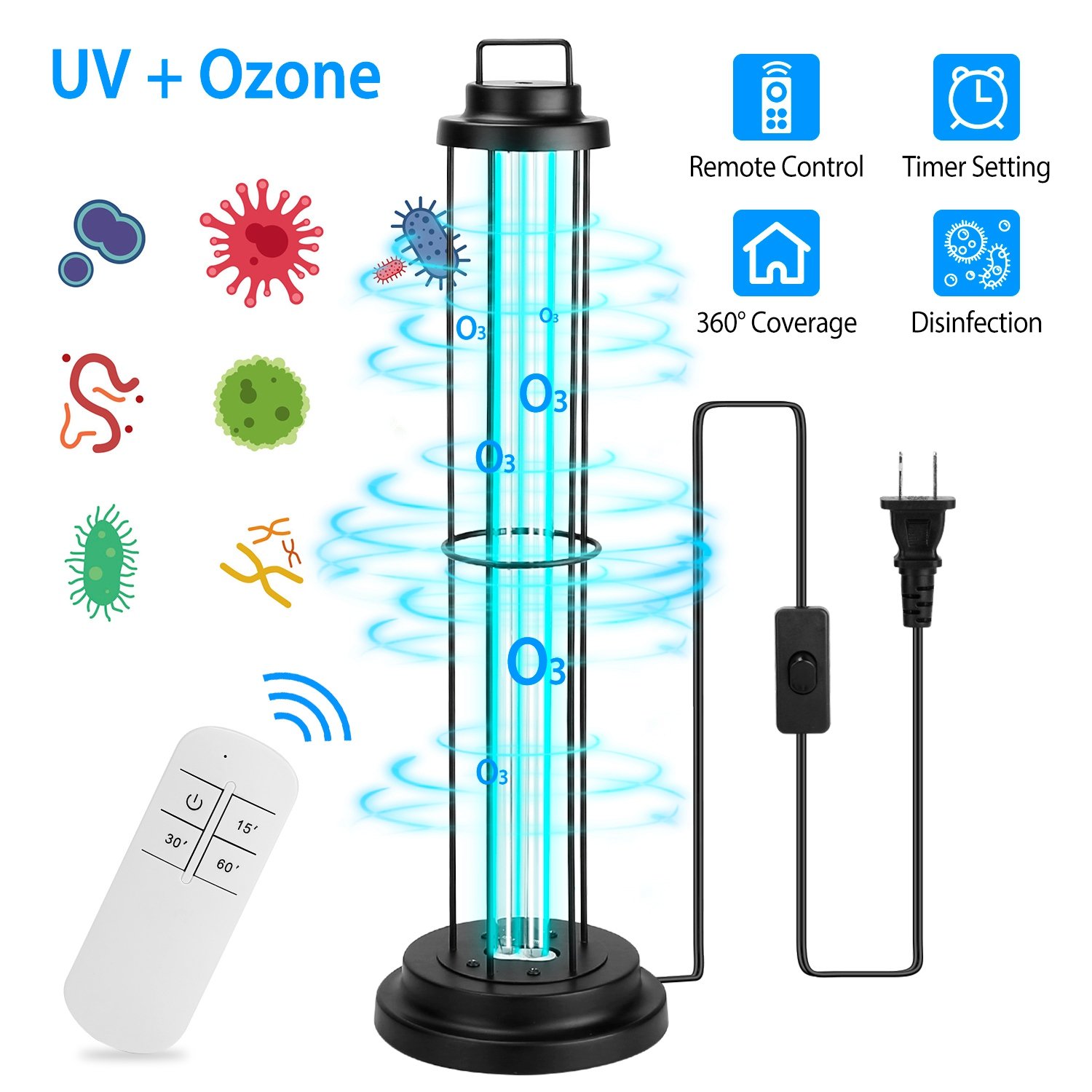 Home > UV Sterilizer Lamp Ultraviolet Disinfection Quartz Tube Light Germicidal Ozone Lamp W/ Timer Function For Car Bedroom Kitchen Hotel Pet Area